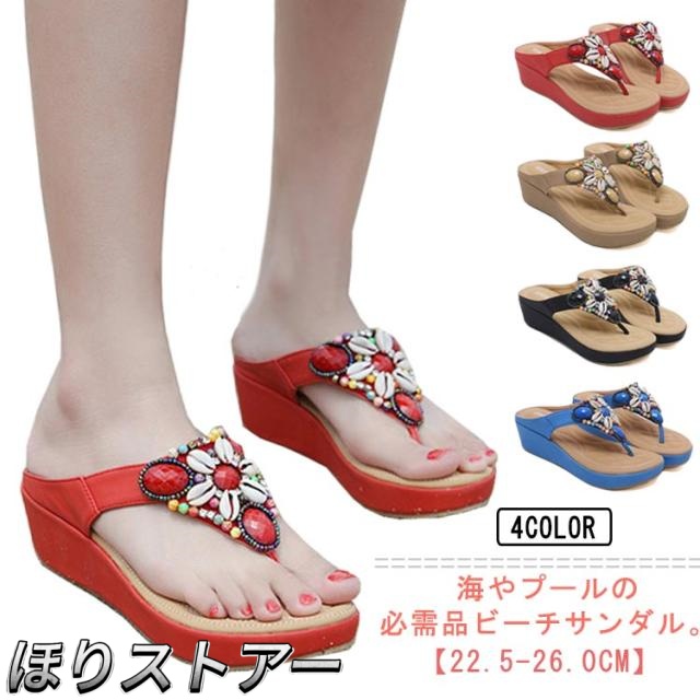 ウエッジソール サンダル ボリュームソール ビーチサンダル トングサンダル 貝殻 厚底 普段履き レディース 5.5cm ヒール ビーチサンダル 海外旅行 レディース ビーチ プール 海辺 華やか 海 付き 花柄 ハワイアン 草履