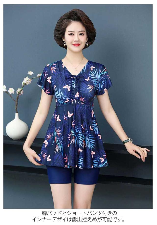 セパレート スイムウェア ショートパンツ ワンピース お母さん シニア 水着 セット レディース 保守 UVカット ママ水着 水着 中高年 温泉 体型カバー 海 ブルー 温泉 着痩せ 露出控えめ おしゃれ