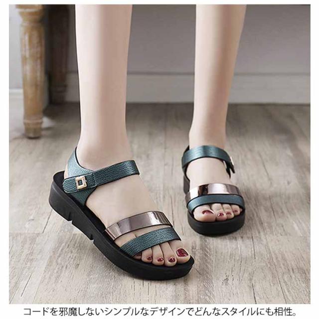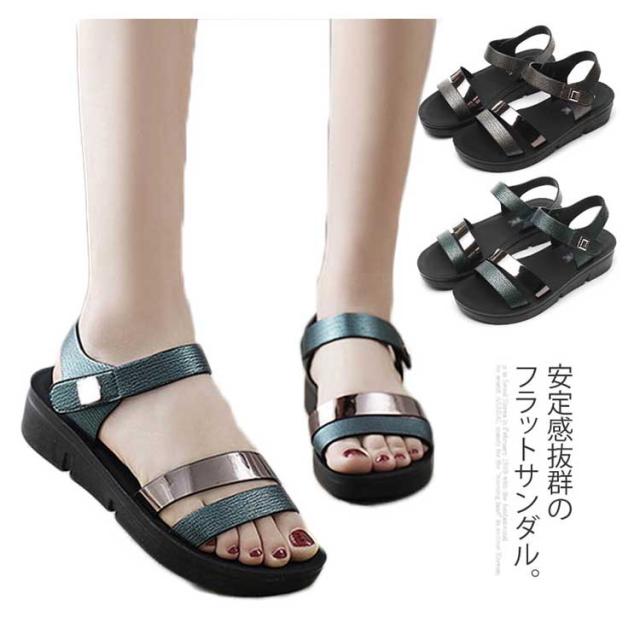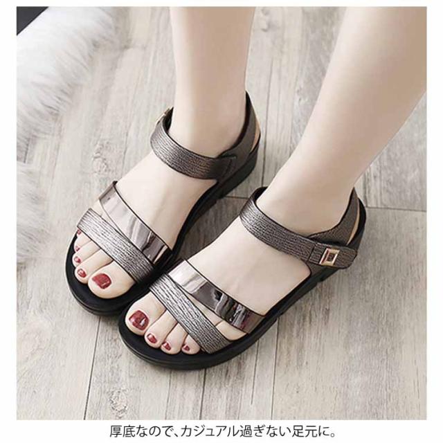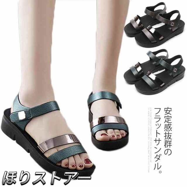 2019新品のシューズ!サンダル ぺたんこ ストラップ 厚底サンダル ストラップサンダル レディース 靴 歩きやすい 痛くない 疲れにくい 大きいサイズ送料無料