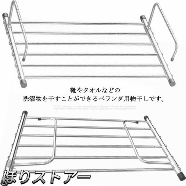 ベランダ用物干し 伸縮可能 洗濯物干し タオルハンガー 引っ掛けタイプ タオル掛け 置き棚 窓枠物干し 靴干し 折りたたみ 組み立て不要 ステンレス製 梅雨対策 洗濯用品 省スペース 取付簡単