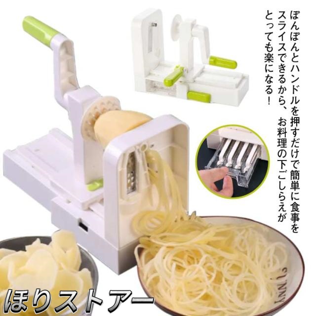 | ぽんぽんとハンドルを押すだけで簡単に食事をスライスできるから、お料理の下ごしらえがとっても楽になる! 4種類細千切りなどお好きな切り方、さらにお好みの厚み、幅に調整できます。 ふんわりキャベツの千切りが出来ちゃいます。 本体にセットしてハンドルをくるくる回すだけ! とんかつの付け合わせ、サラダ、お好み焼、色々なお料理に大活躍。 | |