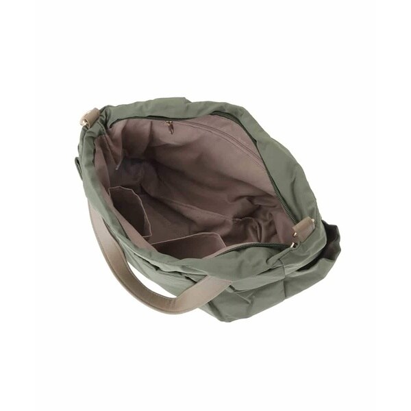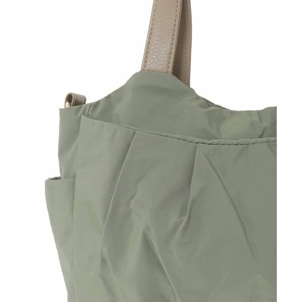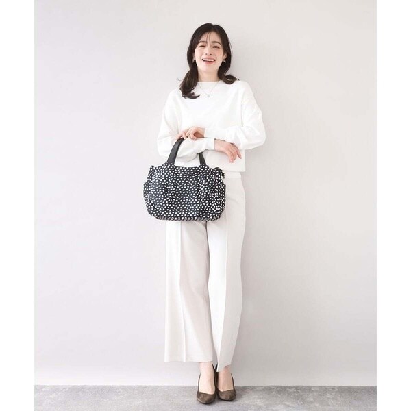 軽量素材でカジュアルな印象ながら、合成皮革の持ち手が品良くまとめてくれる大人カジュアルにぴったりのアイテムです。
