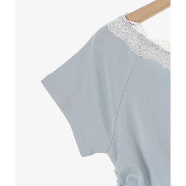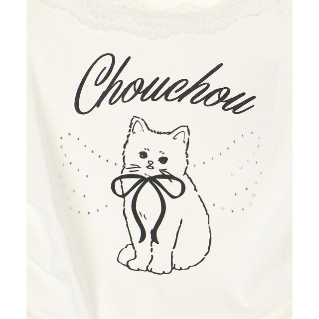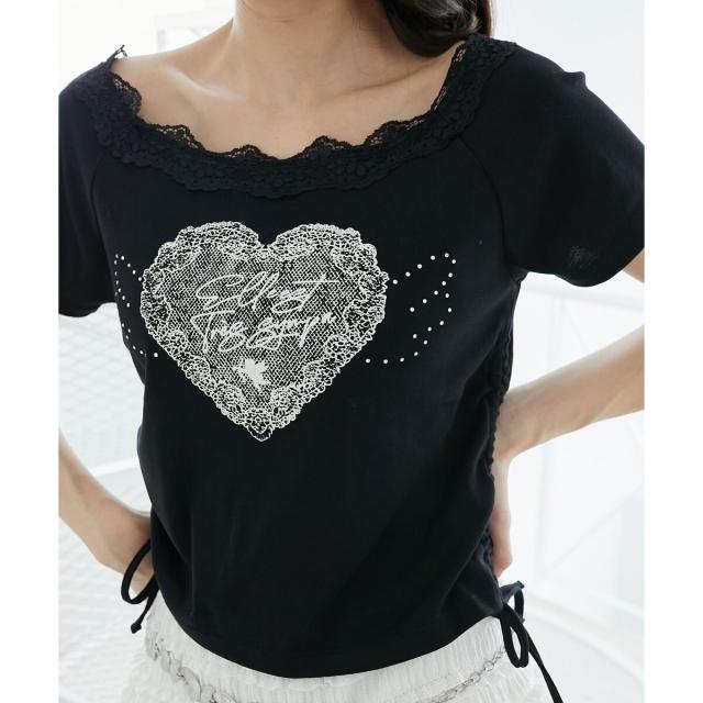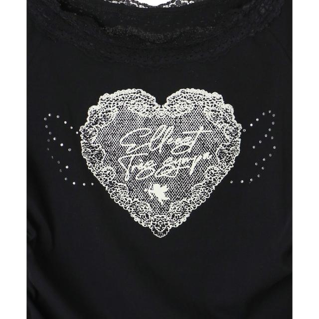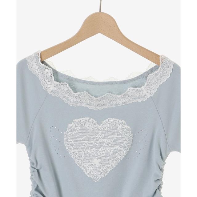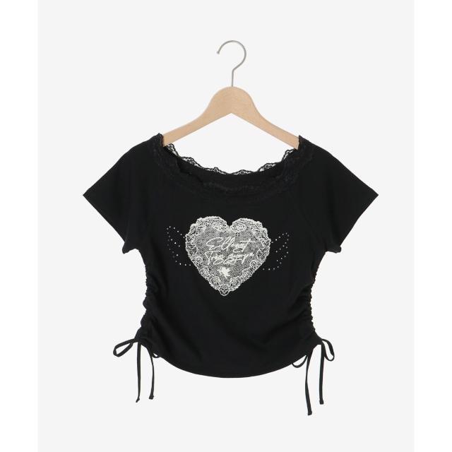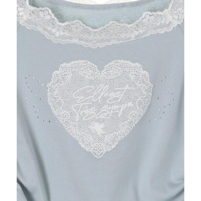 繊細なレースのネックラインに、優しくきらめく天使の羽がシーズンムードを盛り上げるTシャツ。