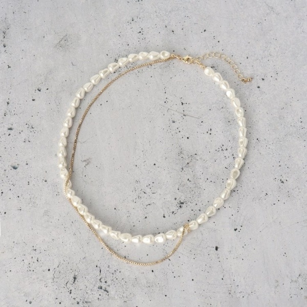華奢なチェーンにフェイクパールがあしらわれた2連ネックレスは、ショート丈でキレイ目な仕上がりが魅力です。
