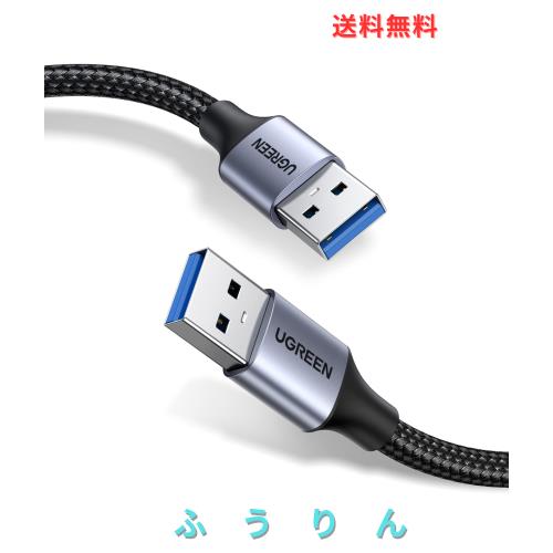 UGREEN USB ケーブル オスオス USB 3.0 a-aタイプ 5Gbps 高速転送 高耐久性 アルミシェルとナイロン編み ライト給電用 冷却ファン HDD TV