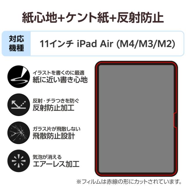【在庫処分・お買い得!】 エレコム iPad Air 11inch M3 M2 用 ガラスフィルム 紙心地 ケント紙タイプ ガイド付 液晶 ガラス フィルム 反射防止 ガイド付 ┃TB-A25MFLGAPLL