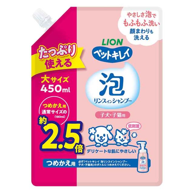 【2個セット】 ライオンペット ペットキレイ泡リンスインシャンプー子犬子猫用つめかえ用大サイズ450ml