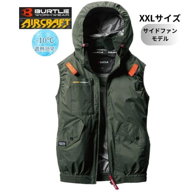 BURTLE(バートル) AC2074 エアクラフト ベスト サイドファン ミルスグリーン XXLサイズ (空調 ファン付きウェア・遮熱・ランヤード ハーネス対応)