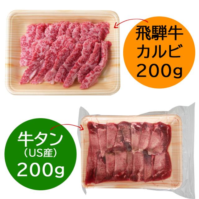 飛騨牛カルビ200g&牛タン200g 送料無料 牛タン 牛肉 焼肉 ブランド和牛 牛たん たん バーベキュー BBQ 少量 ソロキャンプ