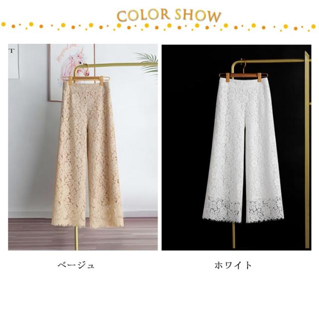 ワイドパンツ レディース 夏 レースワイドパンツ ロングパンツ レースガウチョパンツ ガウチョ パンツ レース カジュアル ロング オシャレ クロップドパンツ イージーパンツ カジュアルパンツ 9分丈 かわいい シンプル 無地 ワイド 体型カバー ゆったり 刺繍 九分丈