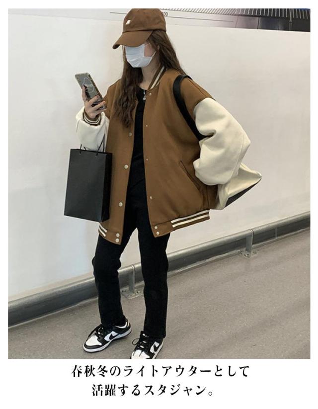 スタジャン ジャケット レディース ブルゾン ジャンパー 春 秋 冬 ドロップショルダー おしゃれ 大きいサイズ 長袖トップス 学生 大人 かわいい ストリート系 韓国風 カジュアル 10代 20代 30代 男女兼用 ユニセックス スポーツ 送料無料
