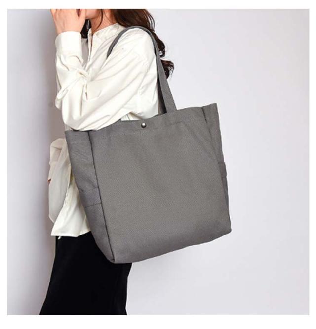 | ロゴ無しシンプルで合わせやすい A4もすっぽり大容量 厚手の帆布で長くつかえる 汚れても洗えるのでキレイに使える 両サイドにポケットにはペットボトルOK ファスナー付き内ポケットに貴重品も | |
