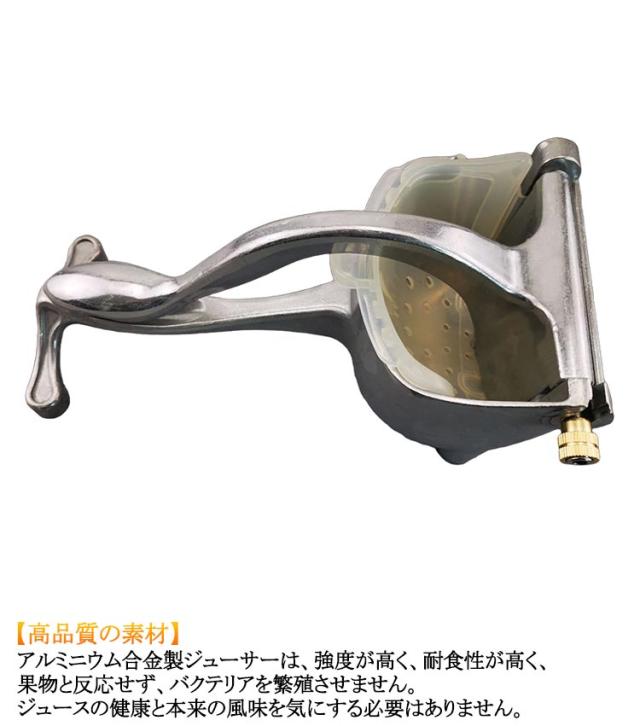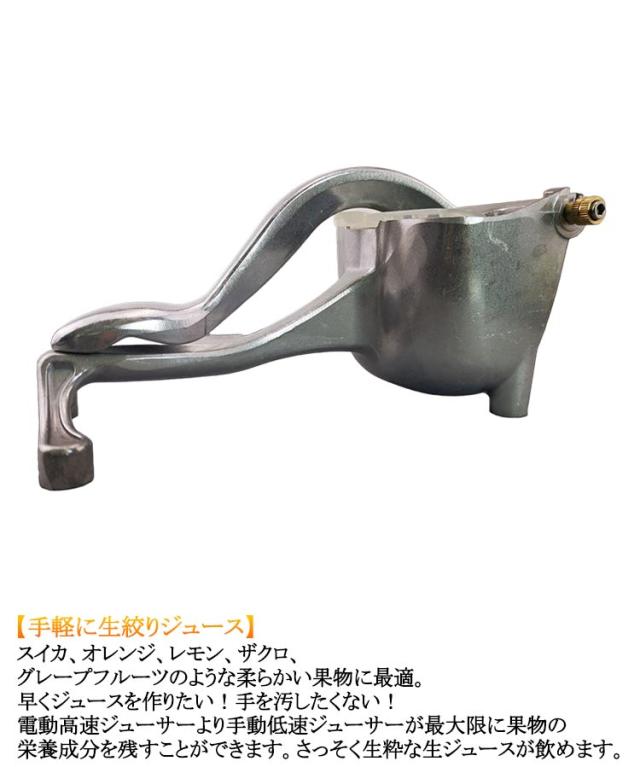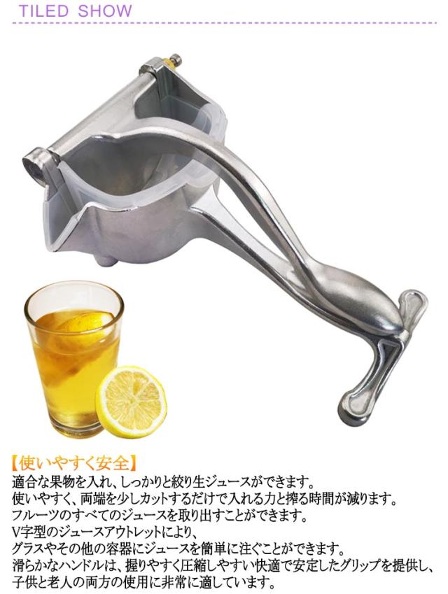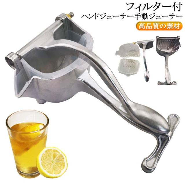 | フィルター付 ハンドジューサー 手動ジューサー 【高品質の素材】 アルミニウム合金製ジューサーは、強度が高く、耐食性が高く、果物と反応せず、バクテリアを繁殖させません。 ジュースの健康と本来の風味を気にする必要はありません。 【使いやすく安全】 適合な果物を入れ、しっかりと絞り生ジュースができます。 使いやすく、両端を少しカットするだけで入れる力と搾る時間が減ります。フルーツのすべてのジュースを取り出すことができます。 V字型のジュースアウトレットにより、グラスやその他の容器にジュースを簡単に注ぐことができます。 滑らかなハンドルは、握りやすく圧縮しやすい快適で安定したグリップを提供し、子供と老人の両方の使用に非常に適しています。 【取り外し可能&お手入れ簡単】 このフルーツジューススクイーザーのコンポーネントは取り外し可能で、水洗いで便利。 【手軽に生絞りジュース】 スイカ、オレンジ、レモン、ザクロ、グレープフルーツのような柔らかい果物に最適。 早くジュースを作りたい!手を汚したくない! 電動高速ジューサーより手動低速ジューサーが最大限に果物の栄養成分を残すことができます。さっそく生粋な生ジュースが飲めます。 | |