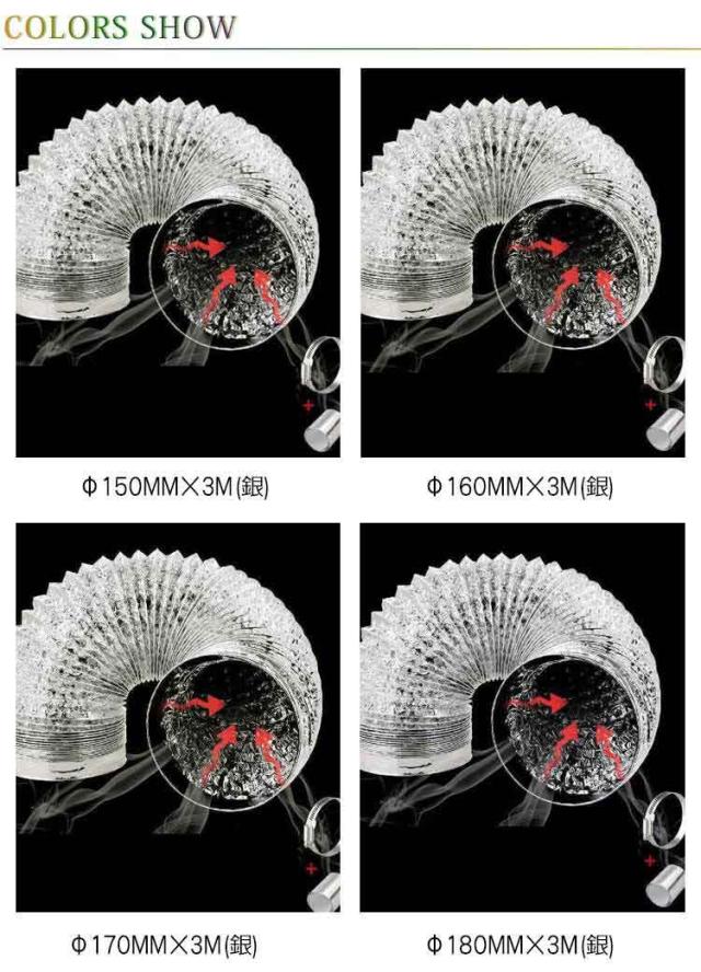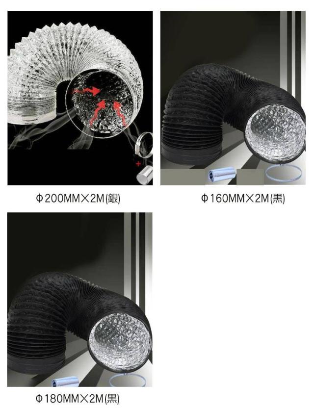 | 色 | Φ150mm×3m(銀) Φ160mm×3m(銀) Φ170mm×3m(銀) Φ180mm×3m(銀) Φ200mm×2m(銀) Φ160mm×2m(黒) Φ180mm×2m(黒) |