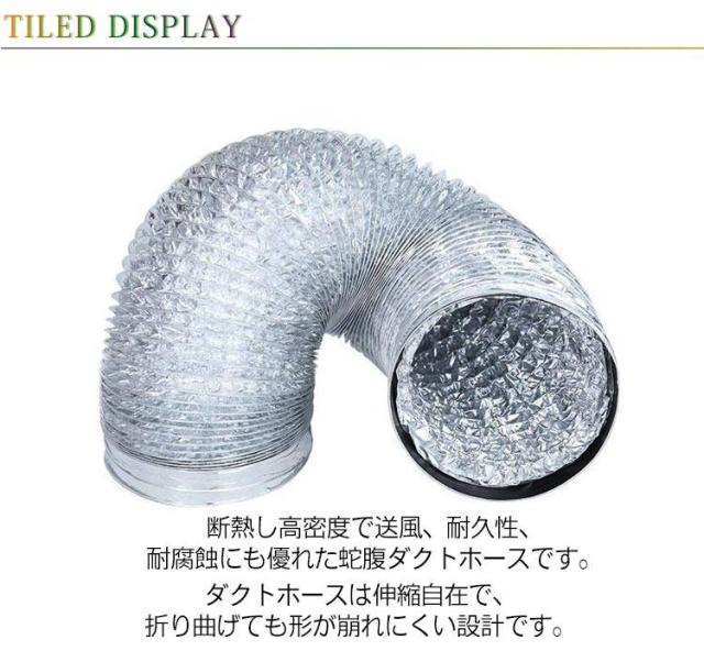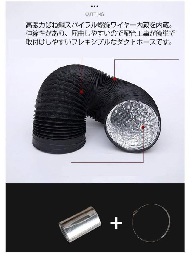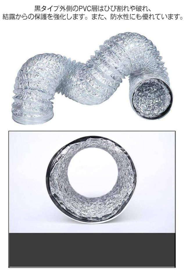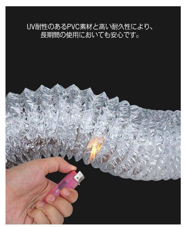 | 断熱し高密度で送風、耐久性、耐腐蝕にも優れた蛇腹ダクトホースです。 高張力ばね鋼スパイラル螺旋ワイヤー内蔵を内蔵。伸縮性があり、屈曲しやすいので配管工事が簡単で取付けしやすいフレキシブルなダクトホースです。 黒タイプ外側のPVC層はひび割れや破れ、結露からの保護を強化します。また、防水性にも優れています。 UV耐性のあるPVC素材と高い耐久性により、長期間の使用においても安心です。 ダクトホースは伸縮自在で、折り曲げても形が崩れにくい設計です。 | |