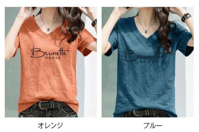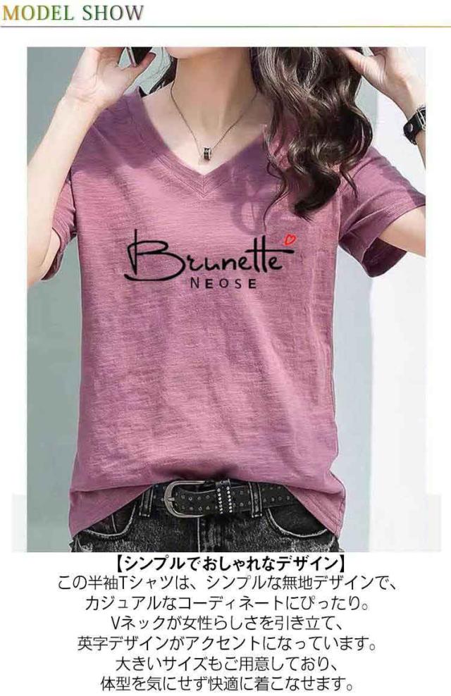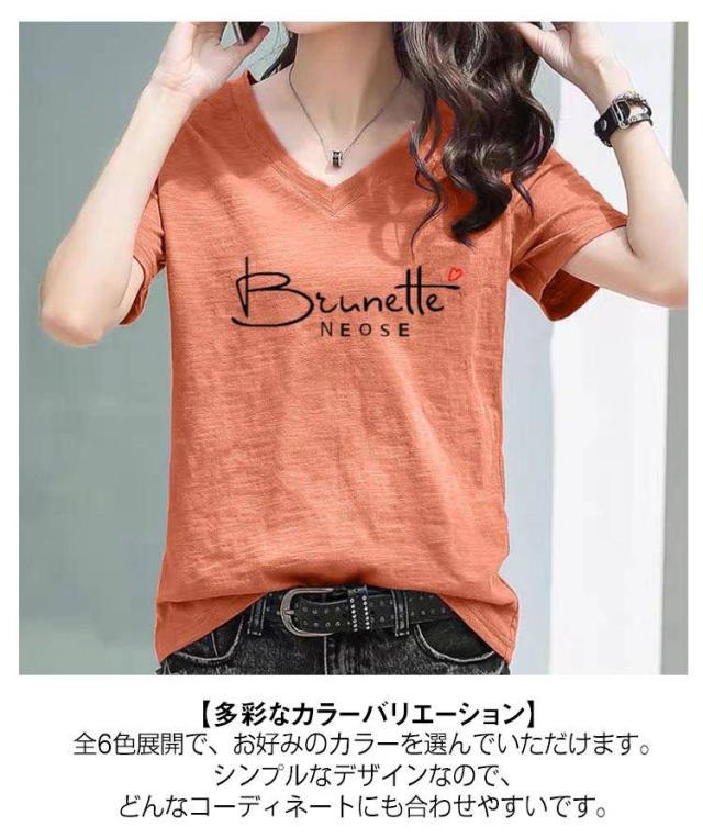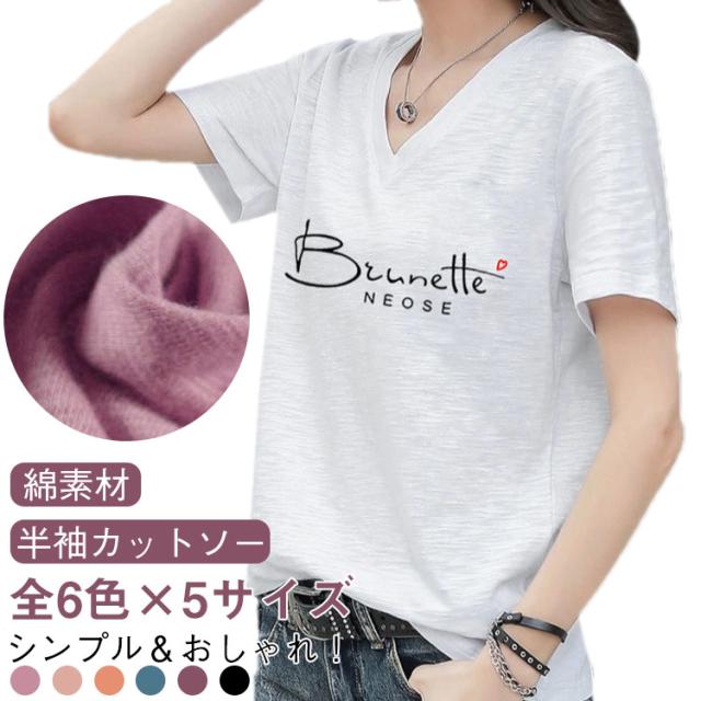 半袖Tシャツ レディース 半袖tシャツ カットソー トップス 半袖 tシャツ Vネック ゆったり 無地 英字 薄手 綿 コットン 柔らか 大きいサイズ シンプル カジュアル 夏 全6色 送料無料