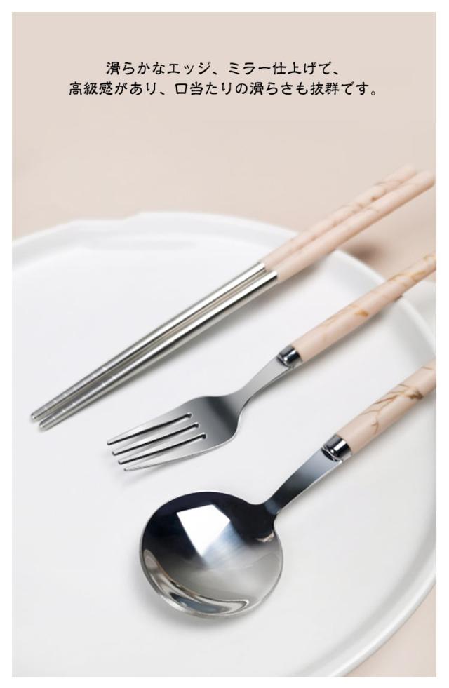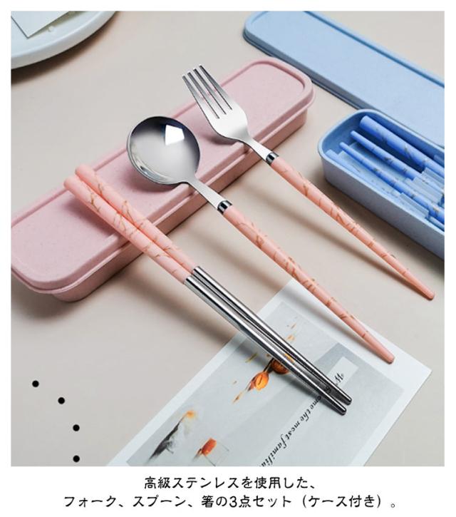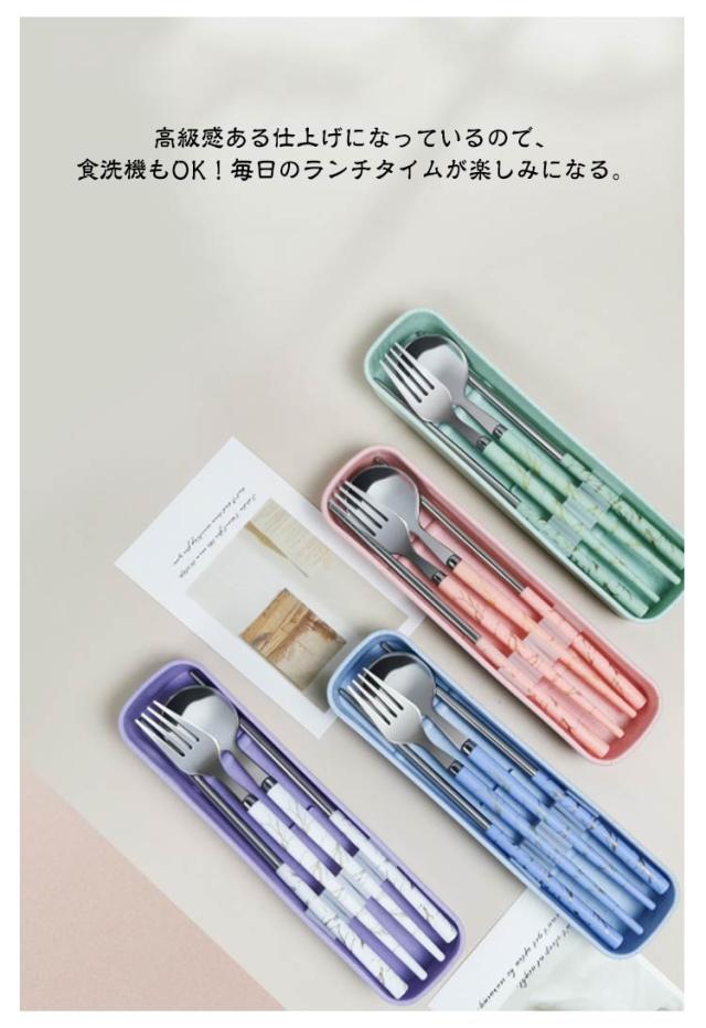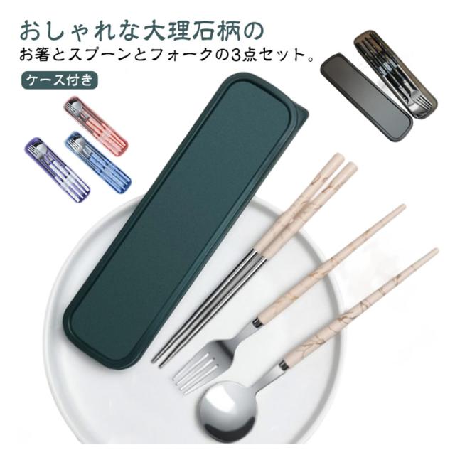 カトラリーセット お弁当 食器 大理石柄 北欧 おしゃれ 韓国風 お箸 スプーン フォーク 3点セット ケース付き コンビセット ステンレス カトラリー セット 北欧食器 軽量 軽い 固定 コンパクト 持ち運び 携帯便利 通勤 通学 キャンプ 大人 学生 ペア 食洗機対応 【送無】