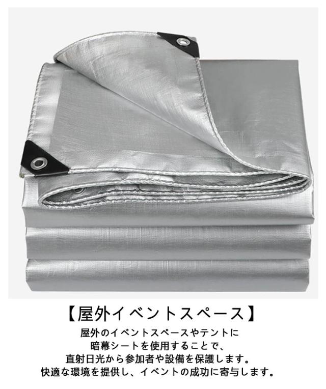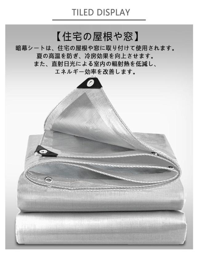 | 暗幕シートの使用シーン 幅2m×長さ2m 幅2m×長さ3m 【住宅の屋根や窓】暗幕シートは、住宅の屋根や窓に取り付けて使用されます。夏の高温を防ぎ、冷房効果を向上させます。また、直射日光による室内の輻射熱を低減し、エネルギー効率を改善します。 【屋外イベントスペース】屋外のイベントスペースやテントに暗幕シートを使用することで、直射日光から参加者や設備を保護します。快適な環境を提供し、イベントの成功に寄与します。 【駐車場】駐車場に暗幕シートを設置することで、車両を直射日光から保護し、高温による車内の温度上昇を抑えます。また、車体の劣化や内部機器の熱ダメージを軽減します。 | |