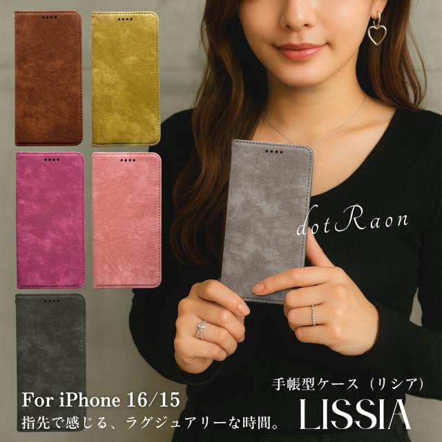iPhone16 ケース iPhone16e ケース iPhone16Pro ケース iPhone15 ケース 手帳型 かわいい カード 韓国 iPhoneケース おしゃれ 女子 耐衝撃 スマホケース ブラック ストラップホール付き PU ヴィーガン レザー カメラ保護 リシア
