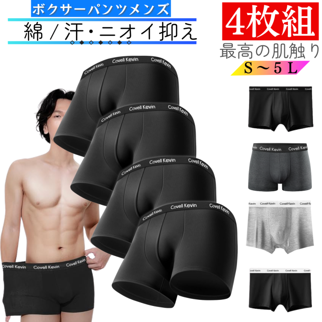 【4枚組】 ボクサーパンツ メンズ 綿 下着 ボクサーブリーフ 4カラー アンダーパンツ ストレッチ コットン 人気 返品可 5代目最新アップグレード