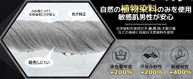 【敏感肌男性が安心】化学染料を使用せず、桑、樫、柿、木犀の葉などの身体に有益な天然の植物性染料のみを使用。カラーは純粋で、色落ちしにくく、化学染料によるアレルギーの心配もない。
