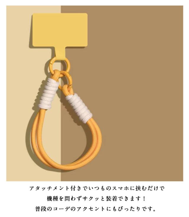 | カラフルなロープが目を引くデザイン カラフルなロープの組み合わせがおしゃれなハンドストラップ。 かわいい配色は見ているだけで気分が上がる♪ 利便性とデザイン性が両立したアイテムです。 バッグに入れておきたい時もかさばりにくい絶妙な長さです。 バッグの中からすぐ見つけられるちょうどいい存在感が嬉しい! ? 豊富なカラーから選べるので普段使いも推し活にもぴったり◎ ユニセックスなデザインなので、友達や家族とおそろいで持つのもおすすめです! ? 太めで柔らかい素材を使用しているので手に馴染みやすく、スマホを傷つけにくい仕様です。 手首にかけて携帯操作しやすい調度良い長さなのもポイント! ? アタッチメント付きでいつものスマホに挟むだけで機種を問わずサクッと装着できます! 普段のコーデのアクセントにもぴったりです。 ? スマホにはもちろん、ポーチや鍵、イヤホンケースなどに取り付けて小物の落下防止としても活躍。 程よい存在感で紛失も防ぎます。 | |