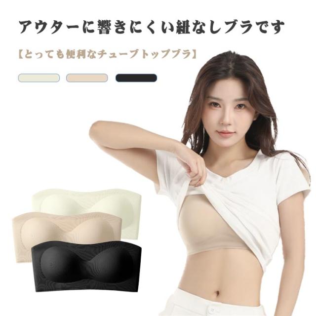 チューブトップ カップ付き ブラ シームレス ずれない チラ見え防止 インナー ノンワイヤー パッド付き チューブトップ ドレスインナー 落ちない チューブブラ ストラップなし 下着 ベアトップ 固定 ダンス 肩こり軽減