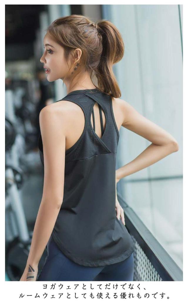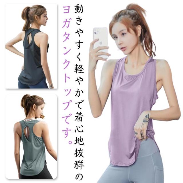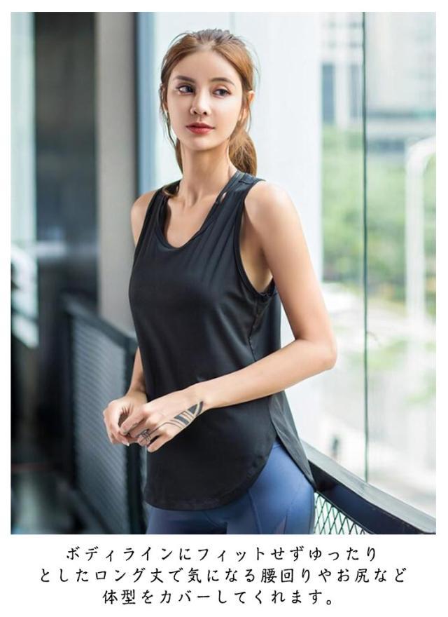 タンクトップ レディース ヨガトップス スポーツウェア トップス ゆったり 長め 袖無し ロング丈 Tシャツ ヨガウェア 吸汗速乾 ピラティスウェア 体型カバー ランニング