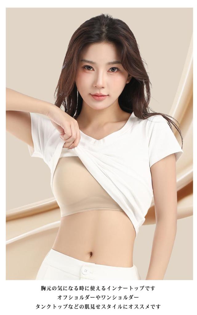 | アウターに響きにくい紐なしブラです。【とっても便利なチューブトップブラ】 フィットネス、ヨガ、ベリーダンスのトップスとして最適です。 胸元の気になる時に使えるインナートップです。オフショルダーやワンショルダー、タンクトップなどの肌見せスタイルにオススメです。 カップ付きなので、キレイなバストラインが形成できます。(取り外し不可) 肌触りの良い柔らかい生地が素肌にフィットします。 伸縮性の高い生地なので、ずれる心配がなく、ホールド感も抜群です。 締め付け感はなく心地よい付け心地です。普段使いからパーティードレスまで様々なファッションにマッチします。 | |