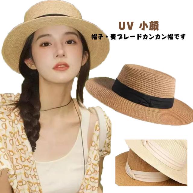 レディース UV 完全遮光 帽子 ビーチ 大きいサイズ 麦ブレード 麦わら帽子 麦わらハット カンカン帽 日よけ 日焼け つば広 小顔 旅行 女性 誕生日 プレゼント おしゃれ 春夏 麦わら帽子 旅行 海 お出かけ サイズ調節可能