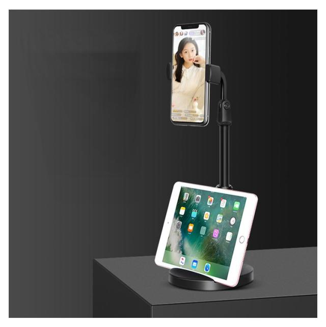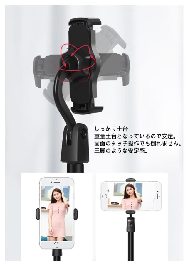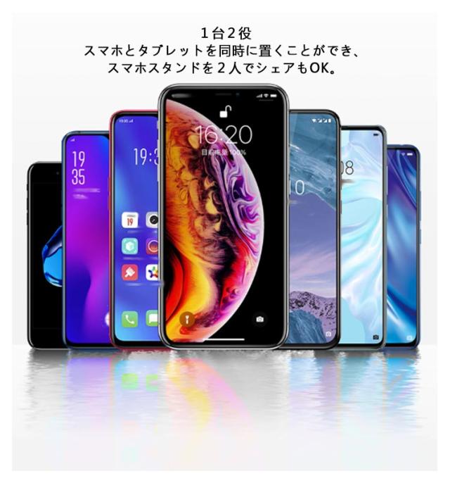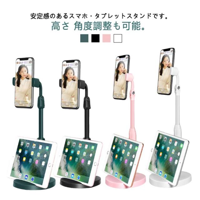 | 安定感のあるスマホ・タブレットスタンドです。 高さ 角度調整も可能。 スマホとタブレット2台置きも可能です。 机に置いてベッドで 寝ながら動画鑑賞。 おすすめポイント 1.高さ伸縮 約24cm〜37cmまで伸縮可能。 ちょうど目線の高さで楽に見れる。 ビデオ会議やライブ配信 テレビ電話 にも最適。 2.しっかり土台 重量土台となっているので安定。 画面のタッチ操作でも倒れません。 三脚のような安定感。 3.1台2役 スマホとタブレットを同時に置くことができ、 スマホスタンドを2人でシェアもOK。 | |