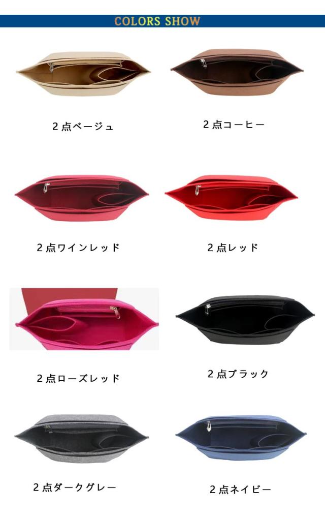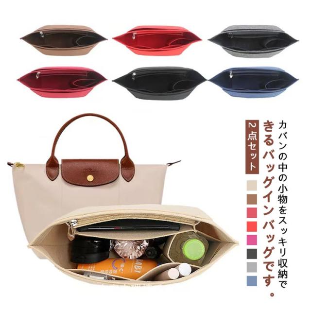 2点セット インナーバッグ バッグインバッグ バッグインバッグ 自立 2点セット フェルトバックインバック 水筒ポケット 小さめ 軽い軽量 整理 仕切りファスナー付き 収納 大容量