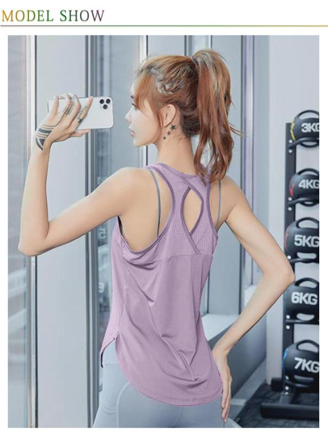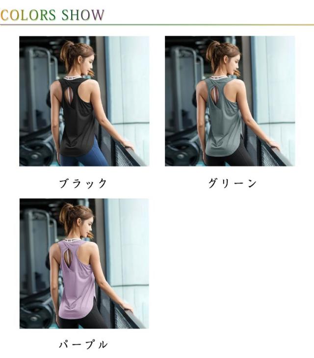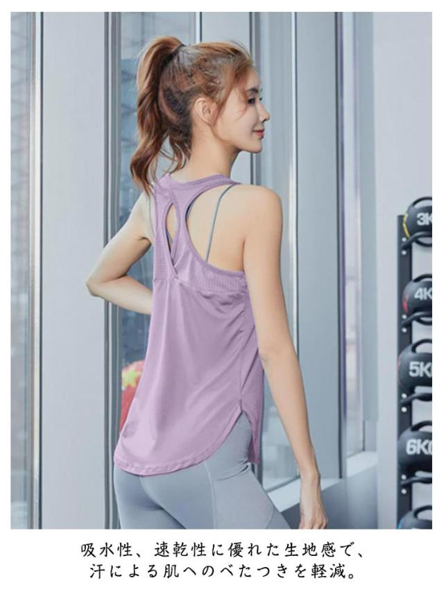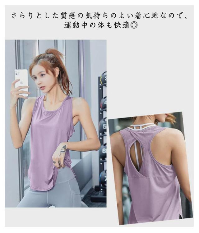 タンクトップ ヨガウェア ゆったり 長め ヨガウェア トップス ヨガトップス 吸汗速乾 ロング丈 Tシャツ 袖無し スポーツウェア ピラティスウェア 体型カバー ランニング