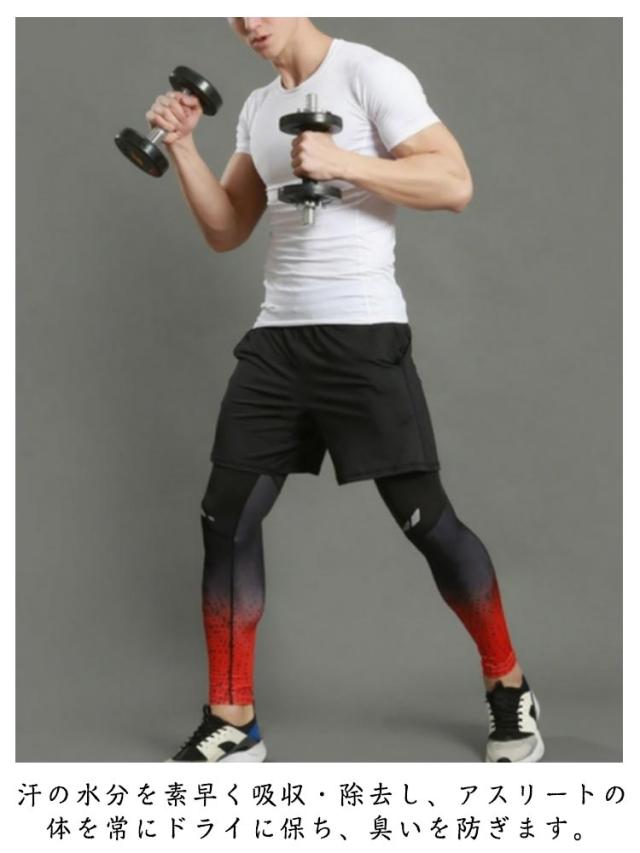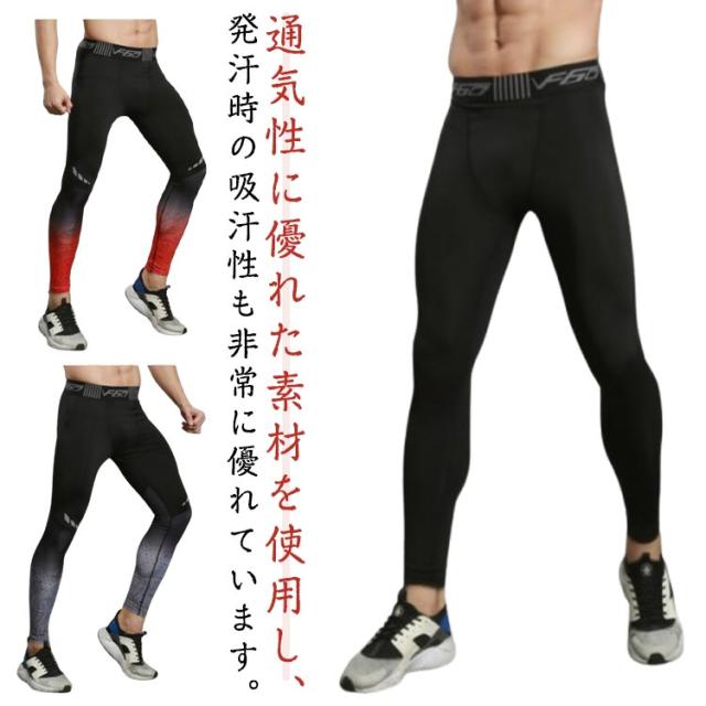 スポーツタイツ メンズ コンプレッションタイツ グラデーション 伸縮性 ロング フィットネスウエア スポーツインナー レギンス スポーツタイツ サポートアンダーウェア