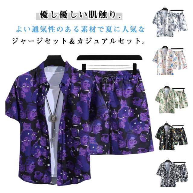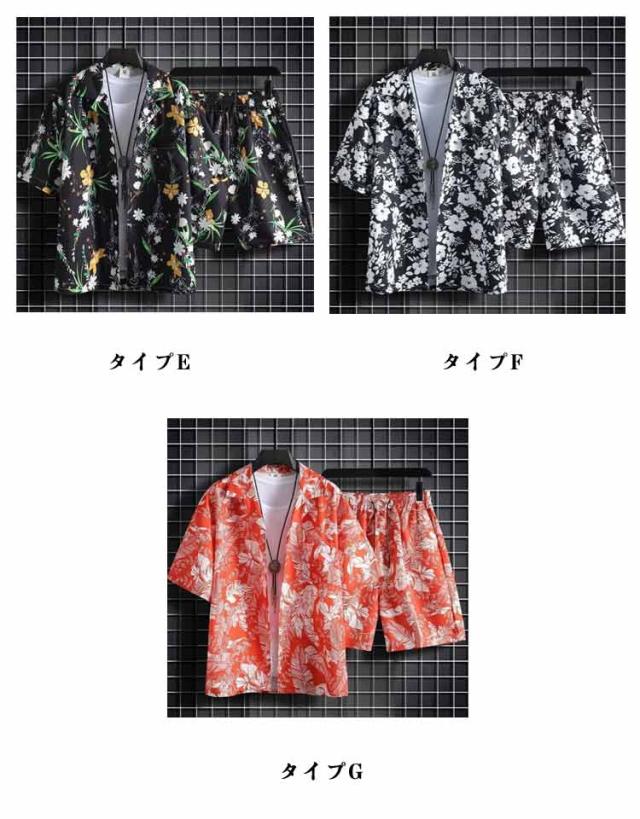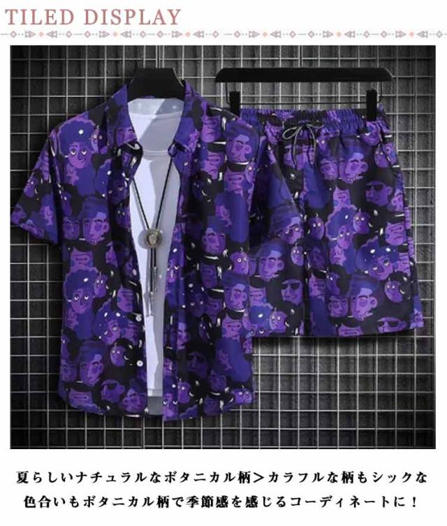 メンズ アロハ アロハ柄 カジュアルウェア アロハ アロハシャツ 上下セット 半袖 花柄 アロハ 上下 柄シャツ ショートパンツ 短パン 膝上 夏 部屋着 おしゃれ セットアップ ボタニカル柄 夏 夏服 ファッション 花火 リゾート 連休 旅行