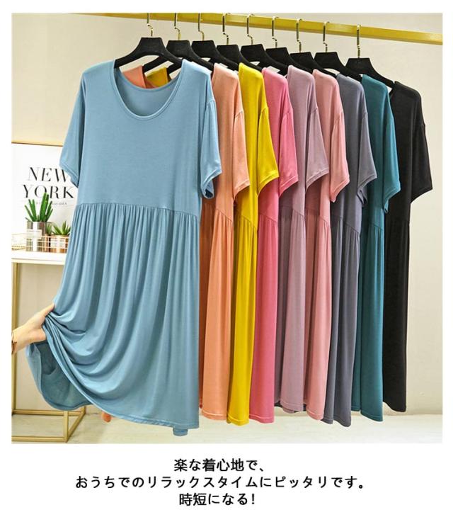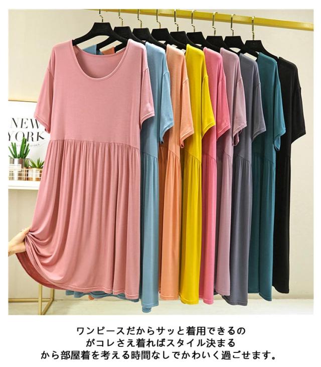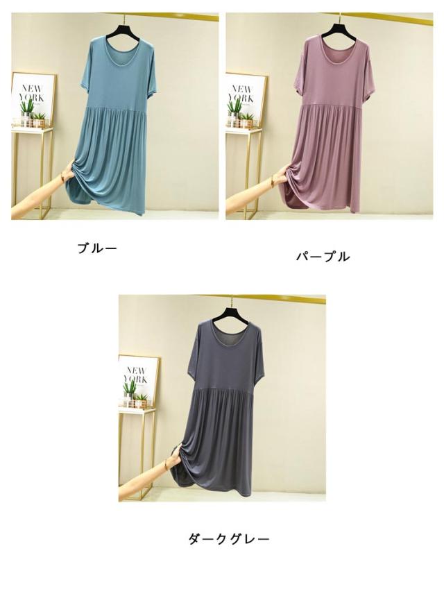 パジャマ レディース ルームワンピ ルームウェア 無地 パジャマ ワンピース 夏用 涼しい 薄手 5分袖 女性 半袖 パジャマ 半袖 パジャマワンピース レディース ルームウェア ワンピース 半袖 大きいサイズ