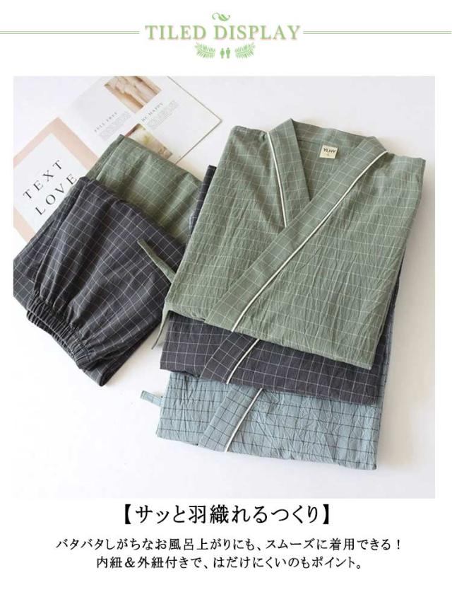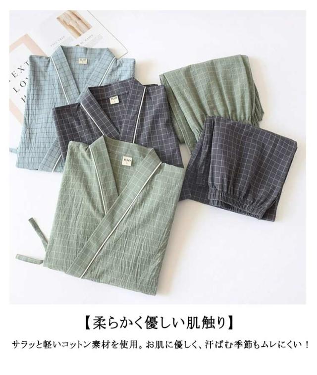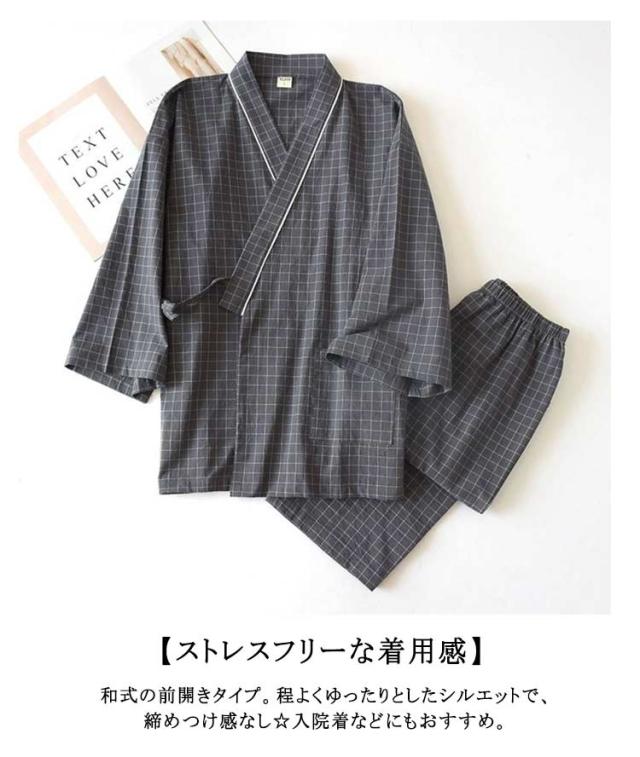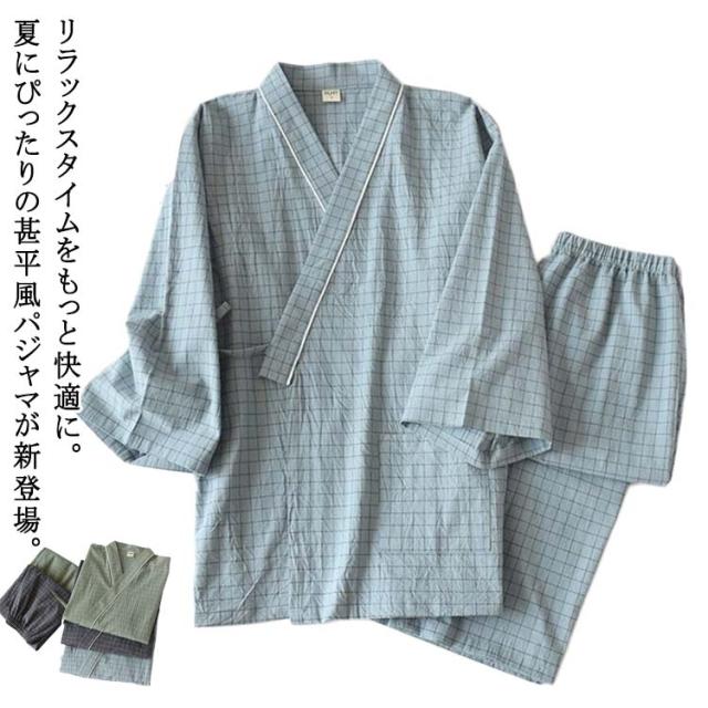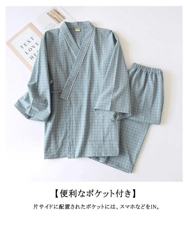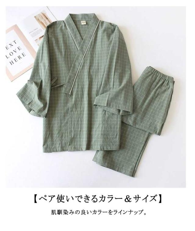 甚平 寝巻き 部屋着 パジャマ 浴衣 メンズ ガーゼパジャマ ルームウェア 浴衣 和風 寝間着 ナイトウェア ペアルック 和風 ペア お揃い 上下セット 薄手 七分袖 前合わせ ペアパジャマ ナイトウエア 春 夏 甚平 綿