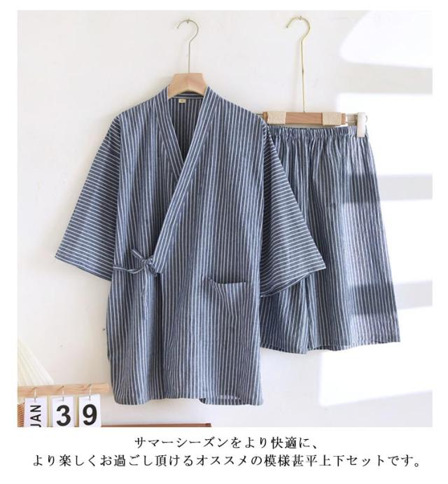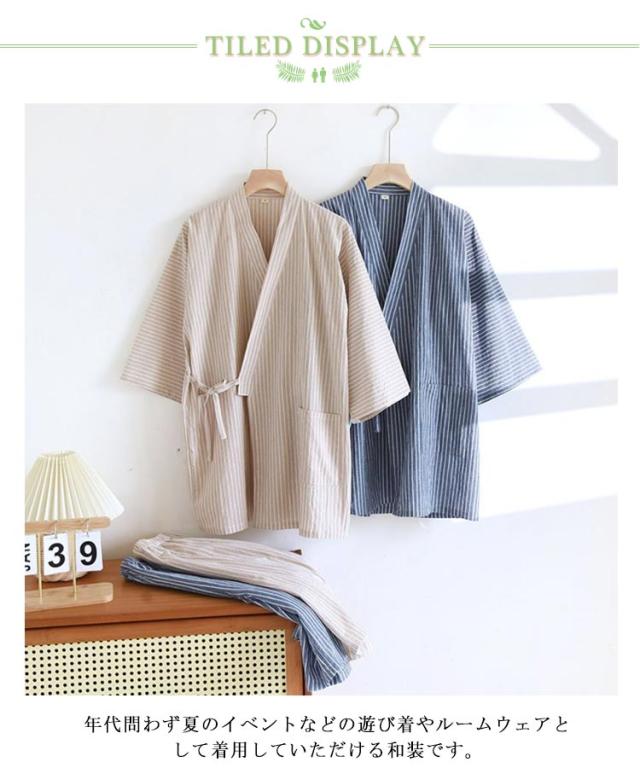 和柄 浴衣 ルームウェア 半袖 浴衣 上 無地 ストライプ ゆかた 下 ルームウェア じんべえ 和装 メンズ 綿 父の日 部屋着 お揃い 花火 イベント セットアップ じんべい 和装 寝巻き 上下 ペアパジャマ 部屋着 夏祭り ナイトウェア 和風 ペア ゆったり 甚平 薄手
