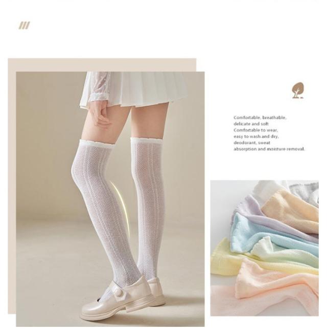 涼しい 蒸れない おしゃれ 薄手 夏 3足組 膝上ハイソックス 可愛い 女の子 メッシュハイソックス ニーハイソックス ハイソックス ソックス キッズ ジュニア 夏 フリル 靴下 80cm 90cm 100cm 110cm 120cm 130cm 140cm