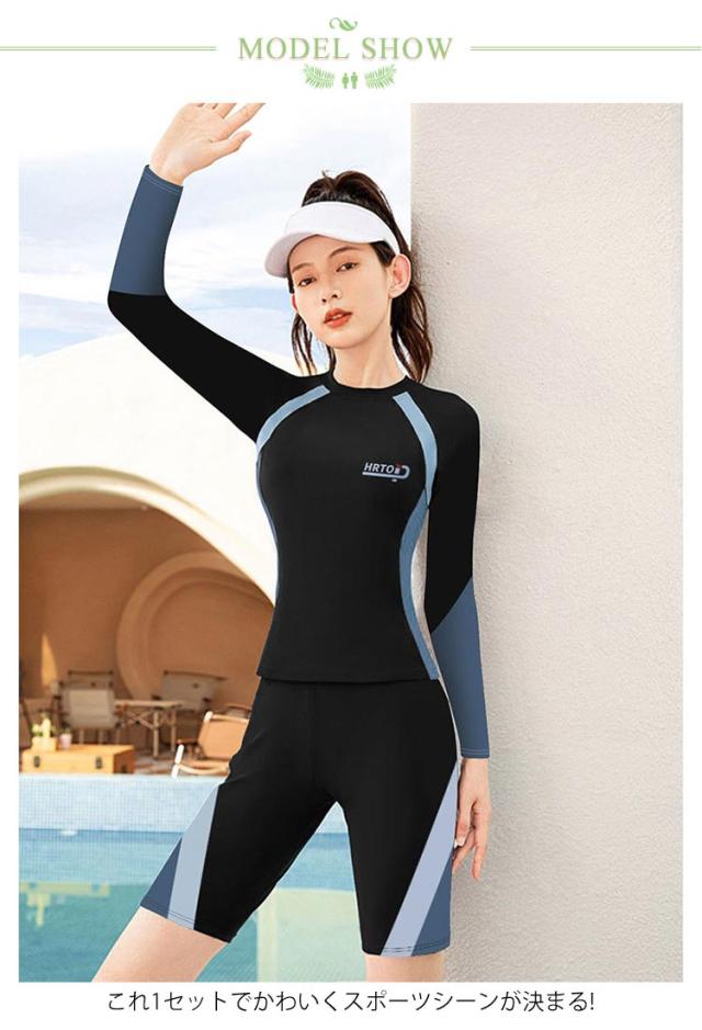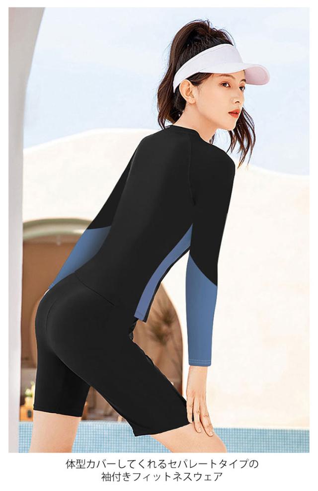 2点セット レディース 水着 五分丈 水着 上下セット ショートパンツ 体型カバー水着 セパレート 長袖 スポーツ フィットネス水着 大人 ママ水着