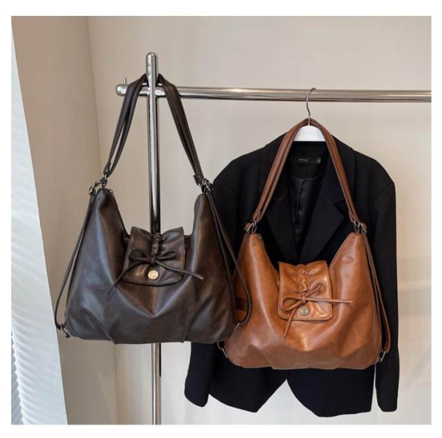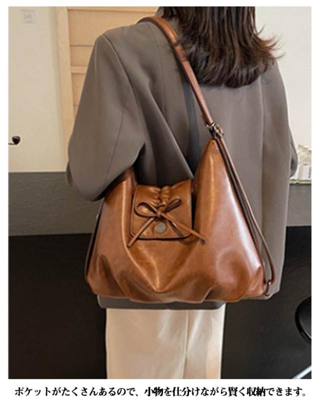 | 毎日のお出かけに最適な「3wayショルダーバッグ」 長さ調節に対応したショルダーベルト付きで、サッと掛けられる「肩掛け」・両手が空く「ショルダー」・長時間の移動に便利な「リュック」の3wayで使えるお洒落なレディースバッグ。 ポケットがたくさんあるので、小物を仕分けながら賢く収納できます。 外側にはマグネットポケット、iPhonePROが楽々入るファスナーポケット、大切な小物の収納に嬉しい背面ファスナーポケットが搭載。豊富なポケット数で、荷物が多い日も安心です。 カバンの内側にも小ポケット、ファスナーポケットが付属。すぐに取り出したいスマホや鍵を分けて収納することができます。 底マチの幅が広いため、お弁当箱も楽々収納することが可能。 A4サイズの書類やiPadが入る大容量設計でたくさんの荷物を持ち歩けます。 高級感のあるPUレザーを採用したレディースバッグはいつものお出かけ、ショッピング、毎日の通勤など幅広いシーンでどうぞ。 | |
