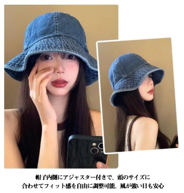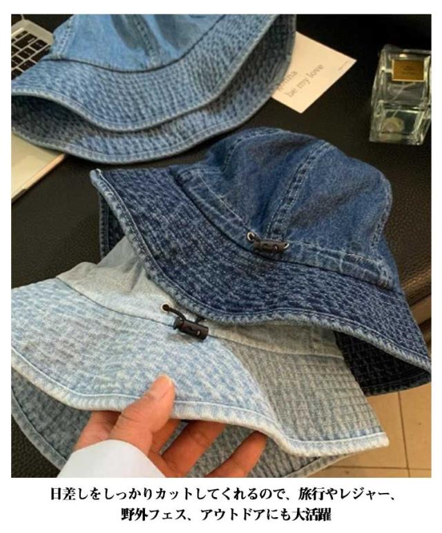 調整可能 小顔効果 レディース 春夏 大きめサイズ 紫外線対策 デニムバケットハット デニムバケットハット 日焼け防止 旅行用 シンプル カジュアル 紫外線カット帽子 アジャスター付き ナチュラル 折りたたみ可能