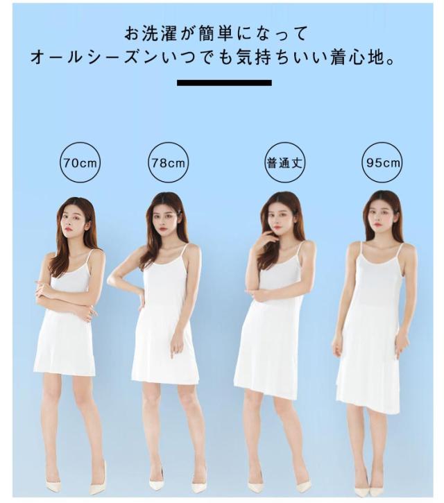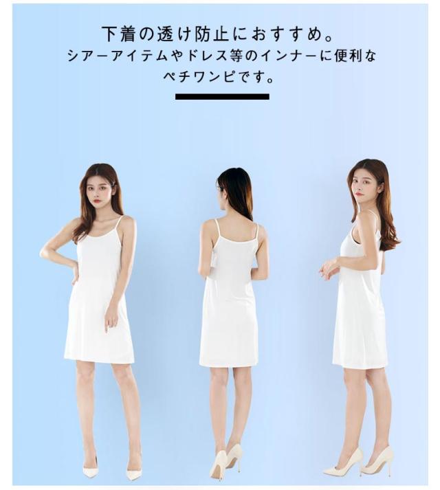 | シンプルで使いやすいキャミソールワンピース ほどよい伸縮性があり肌触りサラサラ、心地良いフィット感! お洗濯が簡単になってオールシーズンいつでも気持ちいい着心地。 下着の透け防止におすすめ。シアーアイテムやドレス等のインナーに便利なペチワンピです。 | |