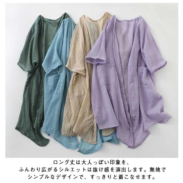 | UVカットと冷房対策、 UV対策としても冷房対策としてもおしゃれでかわいいロングカーディガン ロング丈は大人っぽい印象を、ふんわり広がるシルエットは抜け感を演出します。無地でシンプルなデザインで、すっきりと着こなせます。 ゆったりした袖はストレスがなく、腕の動きがやすく、お出掛けに最適です。接触冷感機能を備えており、暑い季節も快適な着心地を与えてくれます。 薄手で柔らかく、サラッとした肌触りの素材を採用したので、通気性がよくとっても軽いのが特徴です。 ヒラヒラとなびく軽やかな素材は羽織りやすく、またシワになりにくいので 小さく折りたたんで持ち運びもしやすいのが嬉しいポイントです。 着回し力抜群、シンプルなデザインなのでボトムを選ばず、着回し力が抜群な優秀アイテムです。 | |