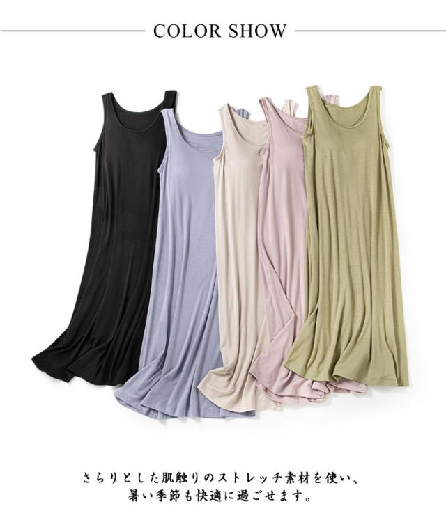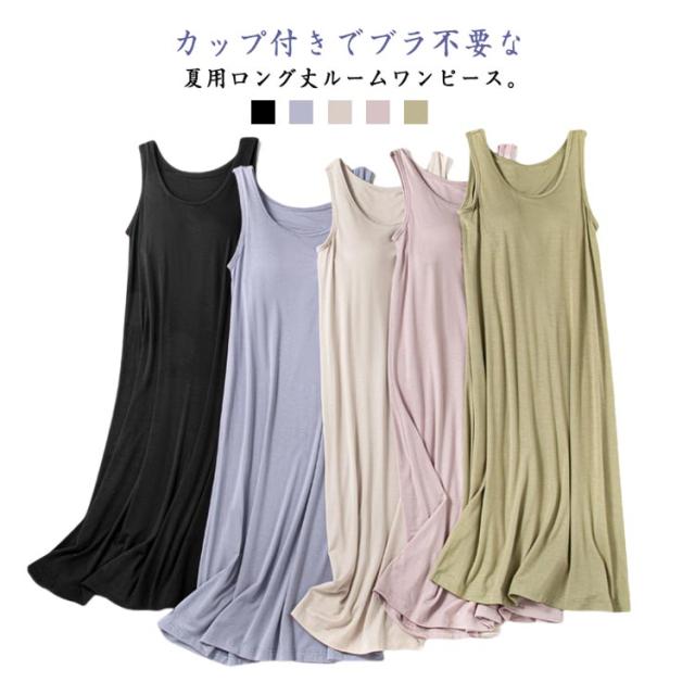 夏用 カップ付き パッド付き ロング丈 レディース ロングワンピース ワンピース 長め パジャマ ブラキャミソール ネグリジェ ルームワンピース 部屋着 ナイトウェア 寝間着 無地 お洒落