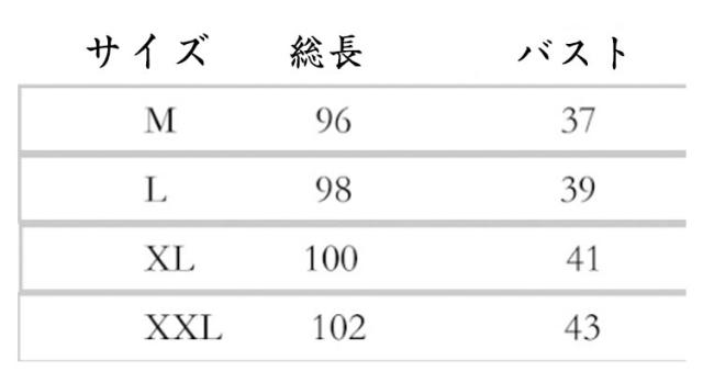 | サイズについての説明 | サイズ 総長 バスト ※サイズ表の実寸法は商品によって1-3cm程度の誤差がある場合がございます。 |