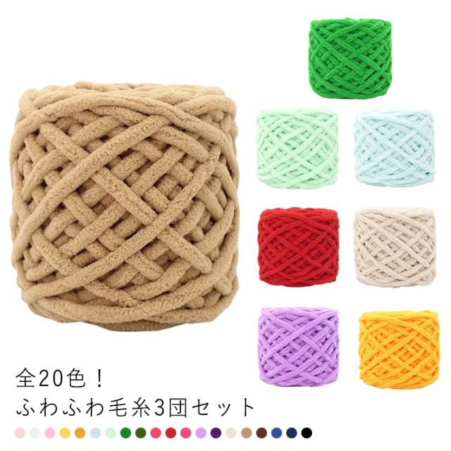 太い毛糸 ポリエステル 毛糸 ふわふわ チャンキーヤーン 手芸 編み物 太 もこもこ毛糸 毛糸ピエロ 厚い毛糸 3玉セット 全20色 もこもこ シェニールニット ニットヤーン チャンキーニット もこもこ毛糸 DIY 無地 カラフル かわいい