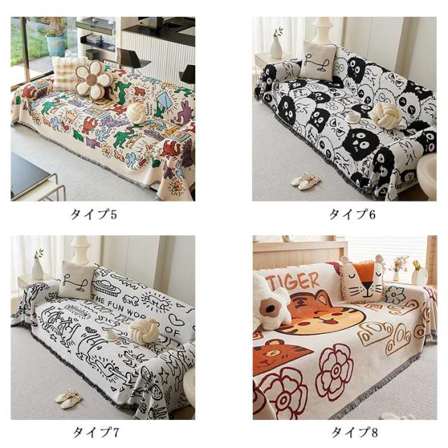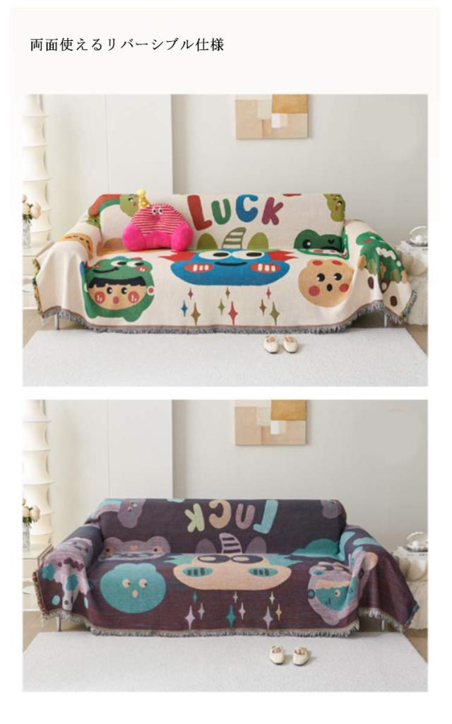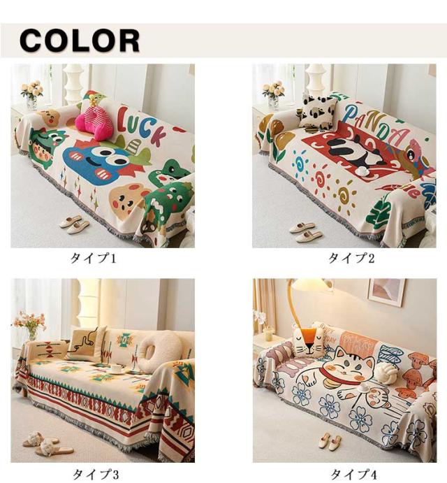 ジャガード編み リバーシブル 一人掛け ソファ 保護カバー ソファーカバー おしゃれ フリンジ付き マルチカバー かけるだけ ソファーカバー インテリア 洗える 汚れ防止 犬猫対策