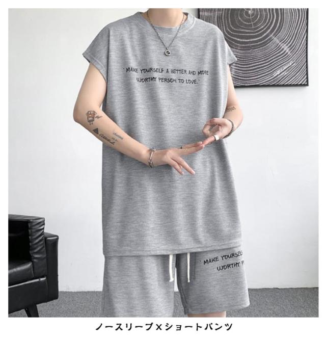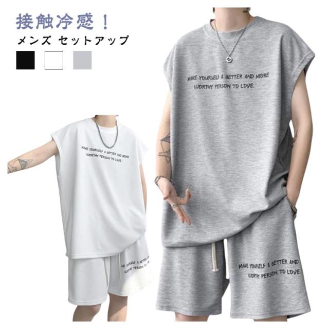 セットアップ 涼しい ノースリーブ メンズ 半ズボン 上下セット Tシャツ 薄手 ショートパンツ 無地 速乾 スポーツウェア ルームウェア カジュアル メンズ 夏服 ブラック ホワイト