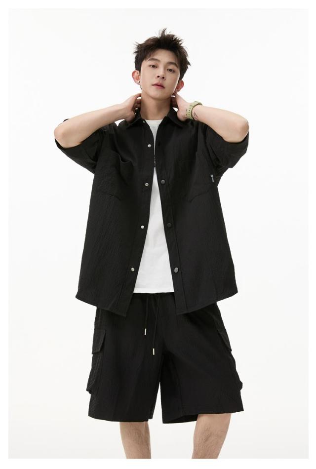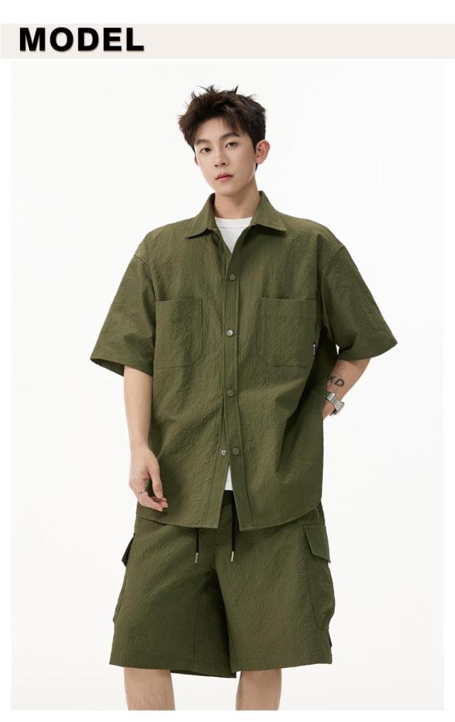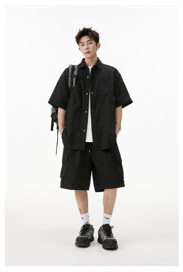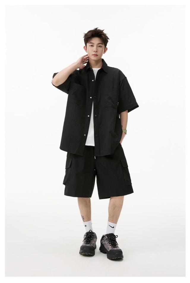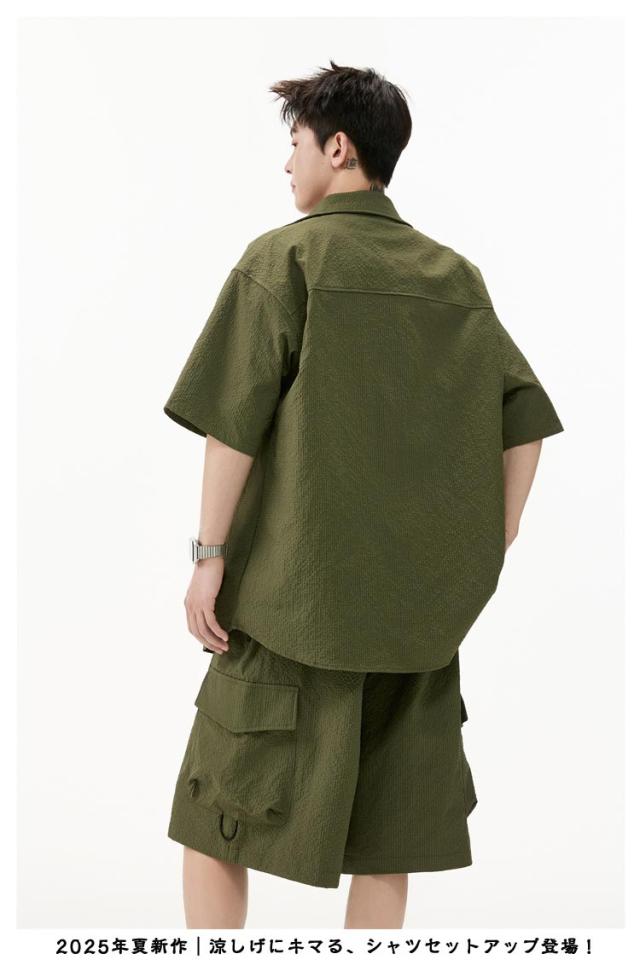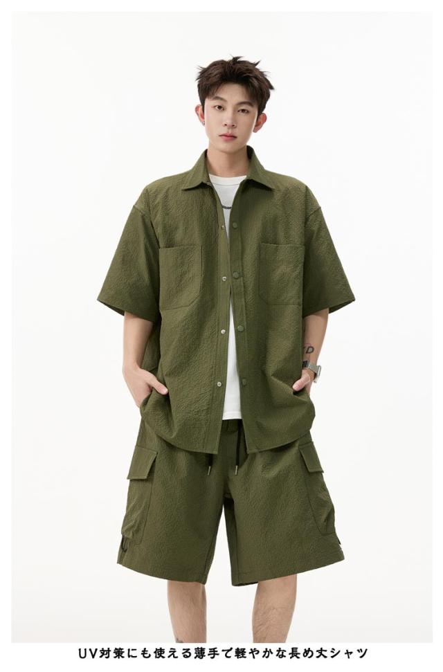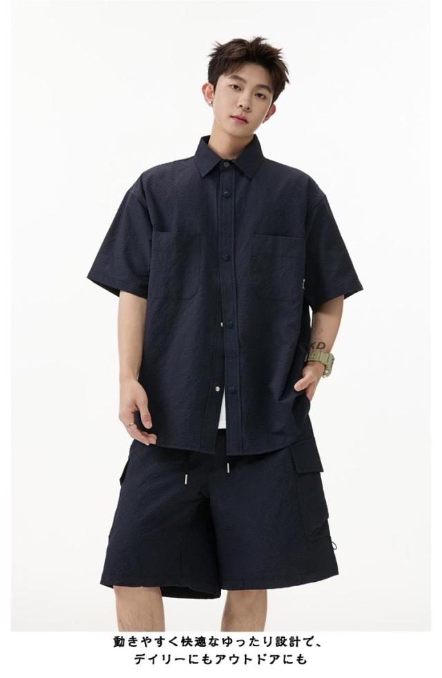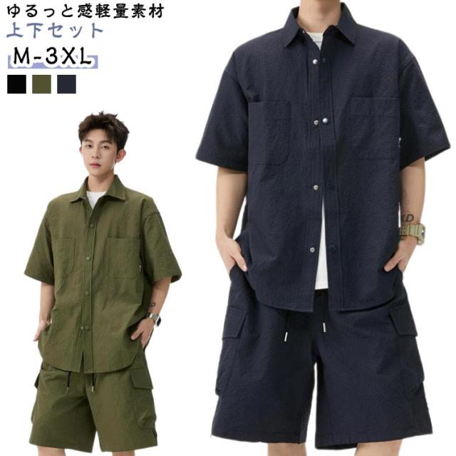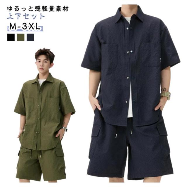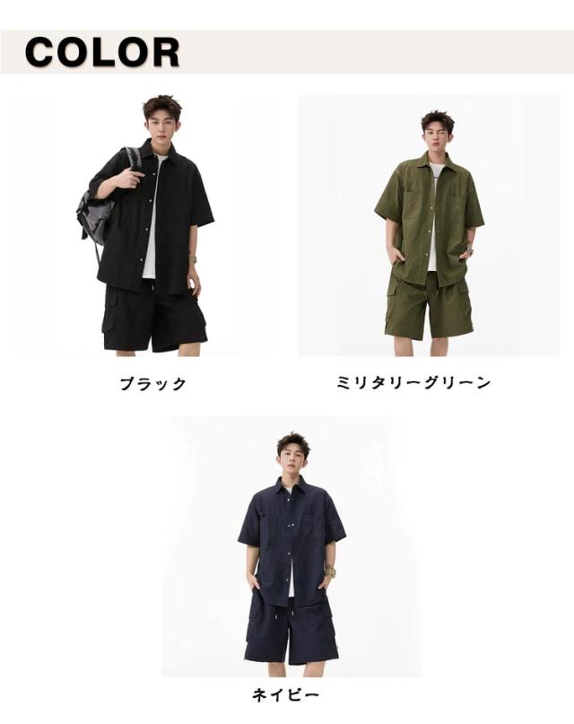 夏 メンズ ショートパンツ おしゃれ シャツセットアップ ハーフパンツ 上下セット 軽量 薄手 大きいサイズ カジュアル シャツセットアップ 夏服 ブラック ミリタリー